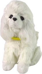 Der niedliche interaktive Pudel-Hund wird zum besten Freund jedes Kindes. Nach dem Streicheln über den Kopf beginnt er zu bellen, bewegt sanft Köpfchen und Schwanz und reagiert auf Berührung. Er hat ein kuschelweiches weißes Fell, ein abnehmbares gelbes Halsband und eine sichere Ausführung mit CE-Zertifizierung und Norm EN71.