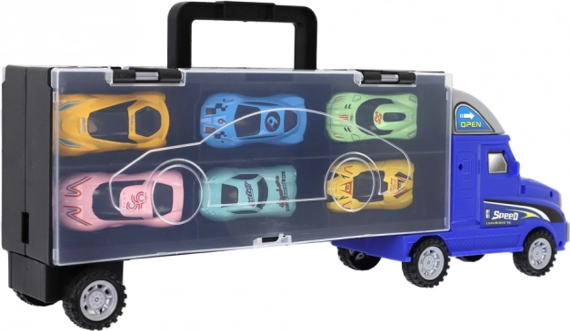 Der unterhaltsame und praktische Max Speed LKW mit Anhänger ist die ideale Wahl für Kinder, die Rennwagen lieben. Dieses Set kombiniert Spielmöglichkeiten und Organisation, was es zu einem idealen Geschenk für kleine Sammler und diejenigen macht, die Ordnung in ihren Spielzeugen bewahren möchten.