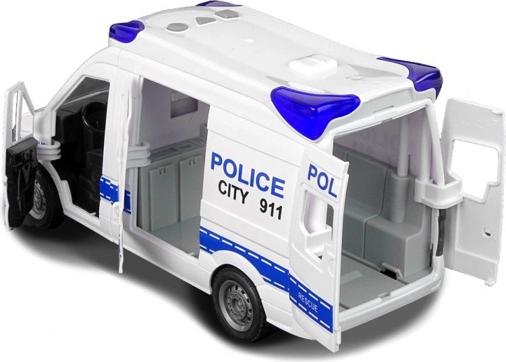 Das Spielzeug-Polizeiauto sieht aus wie ein echtes. Beim Design wurden die wichtigsten Fahrzeugteile berücksichtigt, was mit einer sehr sicheren Verarbeitung einhergeht. Das Spielzeug ist für Kinder ab 3 Jahren geeignet.