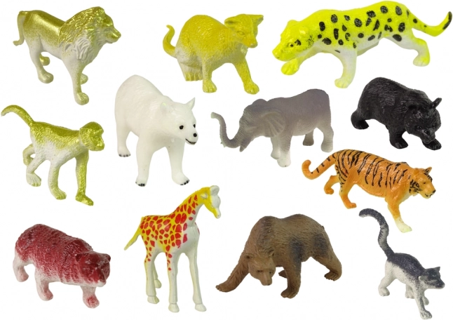 • Kleine Löwenfiguren, vier Bärenfiguren, Gepard, kleiner Elefant, kleine Giraffe, Erdmännchen, Lemur und Affe