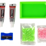 Tragen Sie Kleber auf, nehmen Sie die Kristalle mit dem Wachsstäbchen auf und platzieren Sie sie einzeln für ein präzises, funkelndes Muster.