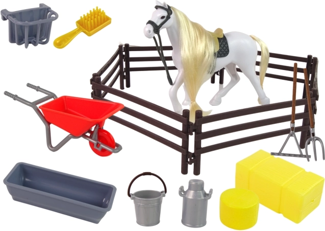 Diese magische Pferdefigur mit langer Mähne ist ideal zum Kämmen und Flechten. Das Set enthält auch Zubehör, das für den Alltag im Stall benötigt wird - wie Schubkarre, Rechen, Gabeln oder Eimer für Wasser und Futter. Kinder können sich auf Stunden voller Spaß freuen, während sie sich um ihren neuen tierischen Freund kümmern und ihre Vorstellungskraft sowie handwerkliche Fähigkeiten entwickeln.