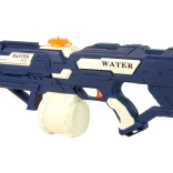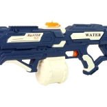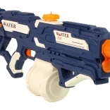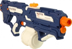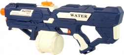 Die vorgestellte Wasserpistole ist blau mit weißen und orangefarbenen Elementen. Die Munition – Wasser – ist sicher, sodass Sie sich bedenkenlos auf ein Gefecht mit Familie oder Gleichaltrigen einlassen können. Unbegrenzter Spaß mit Freunden.