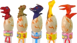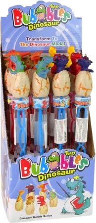 Jede Flasche hat eine längliche Form mit einem Deckel in Form von Dinosauriern im Ei. Es stehen 6 Varianten zur Verfügung (Pterodaktylus, T‑Rex, Triceratops, Stegosaurus, Brachiosaurus, Ankylosaurus) in verschiedenen Farben. Die Flüssigkeit ist farblos und gemäß CE/EN 71 für eine sichere Verwendung zertifiziert.