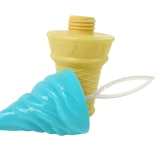 Dieses Spielzeug ist ideal für besondere Anlässe oder für das gemeinsame Spielen im Garten. Der Behälter hat die Form eines Eises. Die Flüssigkeit im Inneren ist farblos – einfach den Stab herausziehen, pusten oder leicht darüberstreichen und vor unseren Augen erscheinen farbige Blasen.