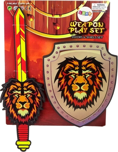 Rittersatz aus EVA-Schaum – Schwert und Schild mit Löwenmotiv
