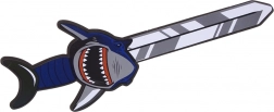 Die markante Hai-Grafik auf Schwert und Schild beflügelt die Fantasie und verwandelt jedes Abenteuer in eine epische Seefahrt.