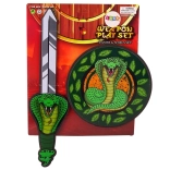 Dieses Ritterset aus hochwertigem EVA-Schaum ist die perfekte Ergänzung zu einem Ritter- oder Königskostüm. Dank des weichen Materials ist das Spiel sicher und angenehm, während das auffällige Motiv einer grünen Schlange auf Schwert und Schild die kindliche Vorstellungskraft und Rollenspiele anregt.