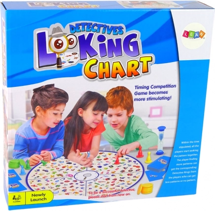 Dieses detektivische Aufmerksamkeitsspiel ist ideal für gemeinsame Momente mit Familie und Freunden. Das farbige Spielbrett mit 56 cm Durchmesser ist voller Icons und Bilder, die Kinder gerne entdecken. Die Spieler decken reihum Karten auf, starten die Sanduhr und markieren die gefundenen Bilder so schnell wie möglich mit ihren Figuren.