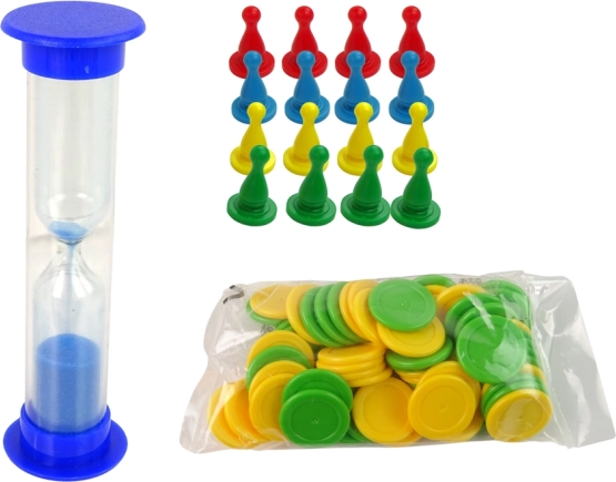 Chips, die für richtige Antworten vergeben werden, steigern den Wettbewerbsgeist und die Motivation. Fröhliche Bilder fördern die Spielfreude.