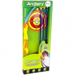 Der Bogen sieht wie ein echter Sportbogen aus; seine leuchtenden Farben und die robuste Konstruktion unterstützen die Herausforderung, die Mitte der Zielscheibe zu treffen. Drei lange Pfeile ermöglichen drei Schussversuche. Der Mini-Profi kann loslegen. Jeder trainiert nach und nach seine Treffsicherheit. Eine tolle Art, Zeit mit Gleichaltrigen oder der Familie zu verbringen.