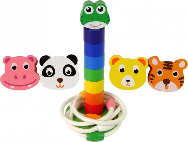 Hölzerne Lernpyramide und Ringe mit Tieren