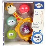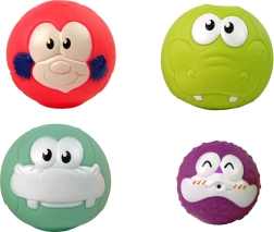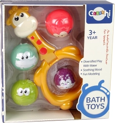 Das Set enthält vier Gummibälle mit Tiermotiven wie Krokodil, Nilpferd, Fisch und Äffchen, die beim Drücken lustig Wasser spritzen. Das Basketballnetz hat einen Reißverschluss und lässt sich leicht in einen Aufbewahrungsbeutel für Spielzeug verwandeln. Schnelles Trocknen verhindert die Schimmelbildung.