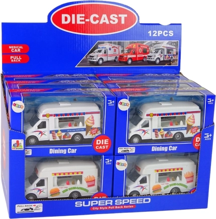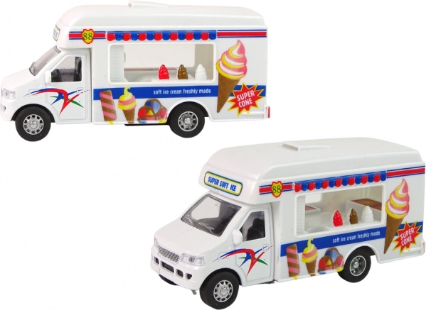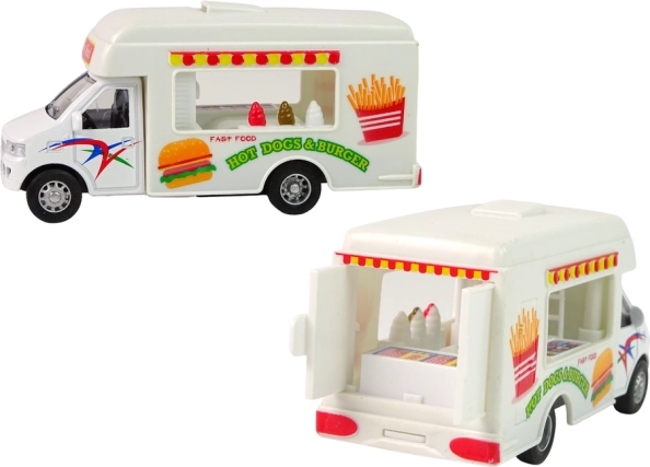 Im Set finden Sie zwei Camper-Modelle. Einer funktioniert als Eisdiele, der andere als Fast-Food. Werden Sie zum Fahrer, der jedes Kind mit leckerem Essen erfreut. Die Camper sind in Weiß gefertigt und mit charakteristischen Aufklebern für jedes Modell versehen.
