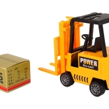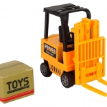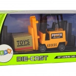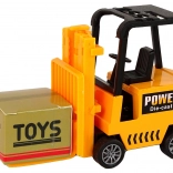 Der Gabelstapler ist mit einem Friktionsantrieb ausgestattet, der eine problemlose Fortbewegung ermöglicht. Ein Bestandteil des Sets ist eine kleine Kiste, die mit dem Gabelstapler transportiert werden kann.