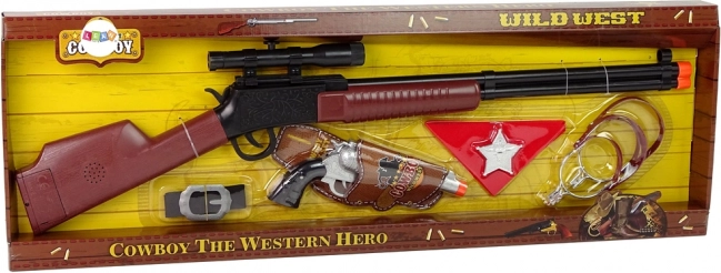 Bereiten Sie sich auf Abenteuer im Wilden Westen vor. Das Cowboy-Set für Kinder verwandelt kleine Helden in einen Sheriff, der für Ordnung sorgt. Das große Gewehr mit Visierung und der kompakte Revolver erzeugen realistische Schussgeräusche – für noch mehr Spielspaß – und bleiben dank der auffälligen orangefarbenen Spitze und der leichten, robusten Kunststoffkonstruktion sicher.