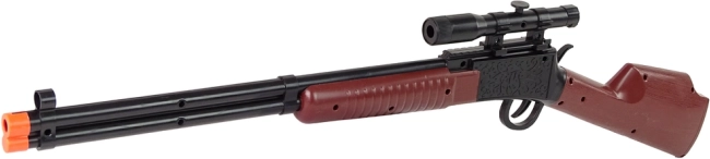 Imposantes Gewehr mit 80 cm Länge und Visierung hilft, Konzentration und Vorstellungskraft zu trainieren. Beim Drücken des Abzugs ertönt ein Schussgeräusch für noch mehr Authentizität.
