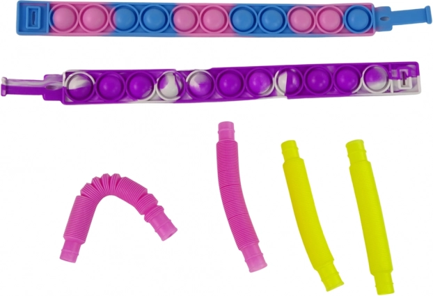 Flexible Pop-Tubes und Dehnschlangen lassen sich auseinanderziehen, verbinden und formen – ideal für Motoriktraining und zum Energieabbau.