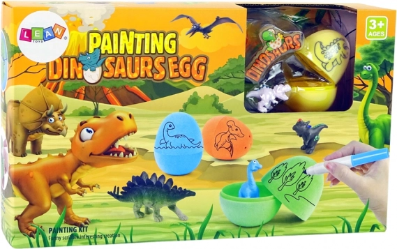 Der Inhalt ist auf Spaß in der Gruppe ausgelegt – dank der vielen Eier kann gemeinsam gestaltet, Ideen geteilt und Zusammenarbeit gefördert werden. Enthalten ist auch eine matte Unterlage mit prähistorischem Motiv, die als Szene für die fertigen Kunstwerke dient.