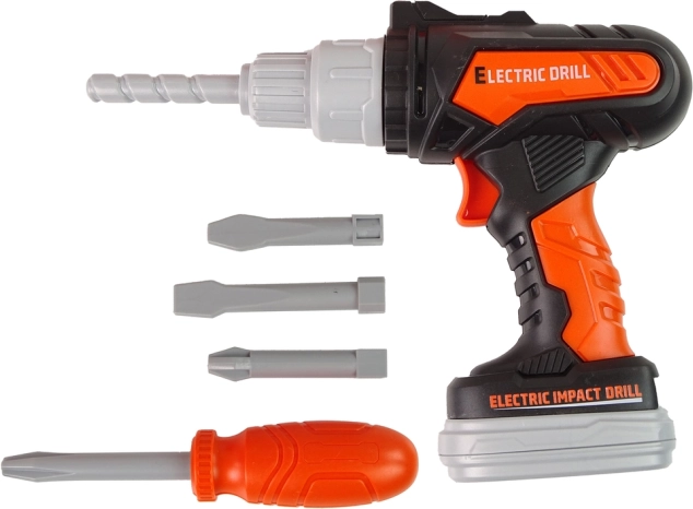 Die batteriebetriebene Bohrmaschine mit drehbarem Bohrer verleiht dem Spiel Dynamik. Ein großartiges Element für jedes Kinderset!