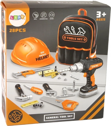 Kinderset Werkzeug mit Rucksack und Helm ist ideal für jeden kleinen Handwerker, der Erwachsene nachahmen möchte. Dieses Set enthält alle erforderlichen Werkzeuge, die ein kleiner Bastler benötigen könnte. Alles ist aus strapazierfähigem Kunststoff gefertigt, der für Kinderhände sicher ist.