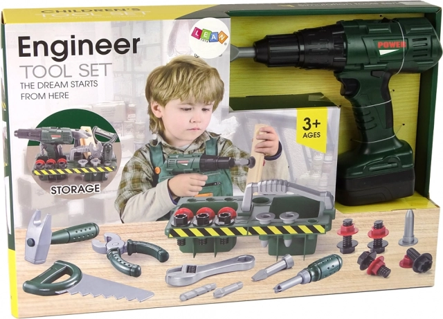 Präsentieren Sie das komplette Handwerksset für Kinder, mit dem sie echte Meister nachahmen können. Die Werkzeuge im Set sind so gestaltet, dass sie dem Kind ein sicheres und realistisches Erlebnis beim Handwerksspiel bieten.
