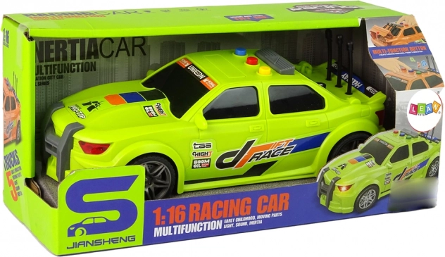 Tauchen Sie ein in die Welt von Geschwindigkeit und Spaß mit dem Rennwagen im Maßstab 1:16. Beim Drücken der Taste werden der Motorstart-Sound und eine dynamische Melodie abgespielt, während Lichteffekte aufleuchten. Einfach anschubsen und dank des Inertialantriebs fährt er los – ganz ohne komplizierte Steuerung.