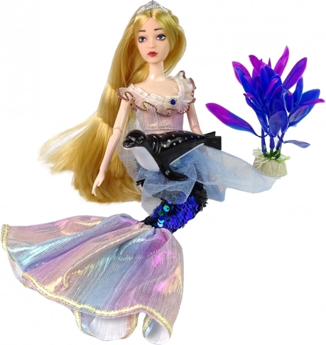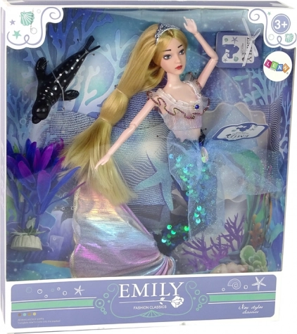 Puppe Emily bringt Kindern jede Menge kreativen Spielspaß. Ihr glitzernder Schwanz mit wechselnden Pailletten verzaubert auf den ersten Blick, und das elegante Rüschentop unterstreicht ihren märchenhaften Stil. Nach dem Abnehmen des Schwanzes steht sie auf den Beinen und ist bereit für Abenteuer jenseits des Unterwasserreichs.