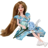 Puppe Emily (30 × 7 × 4 cm) ist die ideale Begleiterin für den Alltag. Die langen, dunkelblonden Haare lassen sich leicht kämmen und stylen, sodass Kinder unzählige Frisuren kreieren können. Das blaue Kleid mit Blumenmuster ist mit einer Spitzenschleife und einem kleinen „Diamant“-Detail am Ausschnitt verziert, was der Puppe einen eleganten Look verleiht.