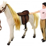 Entdecken Sie eine Welt voller Abenteuer mit dieser Reiterpuppe und dem weißen Pferd! Das perfekte Set für jeden kleinen Pferdefan, das die Spielmöglichkeiten erweitert und die Fantasie fördert. Das Spielzeug umfasst eine Puppe mit beweglichen Gliedmaßen für verschiedene Spielpositionen und ein stylisches Outfit, ganz im Look moderner Reitmode. Das weiße Pferd aus angenehm anzufassendem Material hat ein realistisches Erscheinungsbild, inklusive Sattel und Zaumzeug.