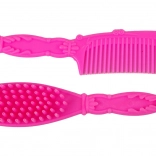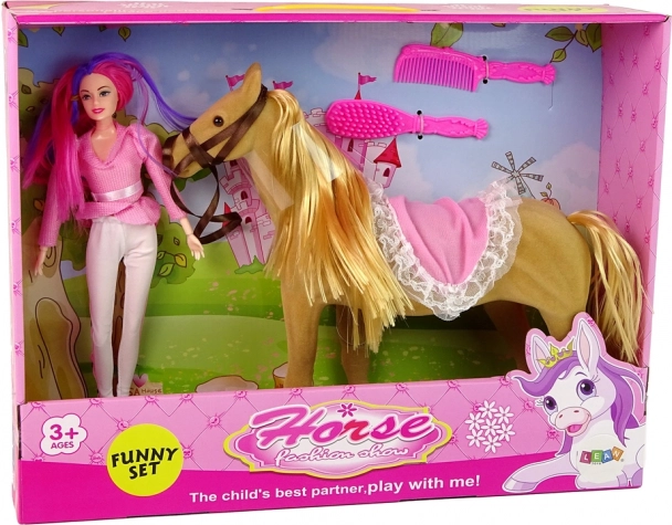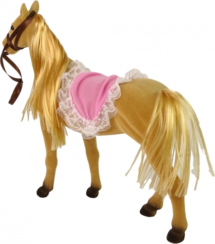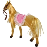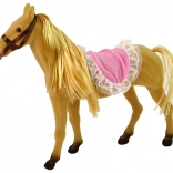 Das braune Pferd hat einen wunderschönen rosa Sattel und eine lange Mähne, die mit der beiliegenden Bürste und dem Kamm frisiert werden kann.