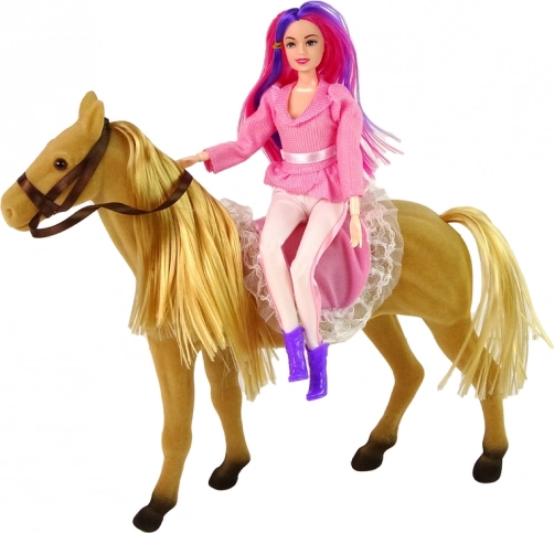 Treten Sie ein in die Welt der Fantasie mit der Reiterpuppe und ihrem schönen braunen Pferd. Die Puppe hat flexible Arme und Beine, sodass sie in verschiedene Positionen gebracht werden kann – stehend oder sitzend auf dem Pferd. Ihr stilvolles Outfit ist typisch für den Reitsport und verleiht dem Spiel zusätzliche Authentizität.