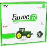 Die Karosserie des Traktors besteht aus robustem Metall, während Fahrgestell und Räder aus Kunststoff sind. Das gewährleistet Langlebigkeit und Widerstandsfähigkeit beim Spielen.