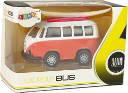 Mit seiner realistischen Verarbeitung imitiert dieses Metall-Busmodell perfekt ein echtes Vintage-Fahrzeug. Es zeichnet sich durch detailgetreue Innenausstattung und Gummireifen aus. Kinder können mit diesem Modell ihre Fantasie entwickeln und Fahrten durch alle Räume im Haus planen.