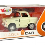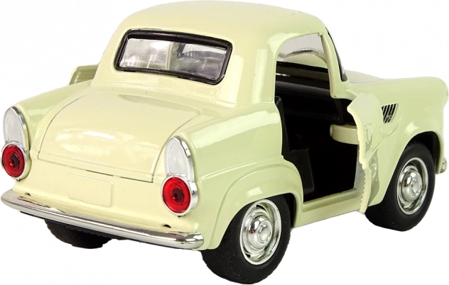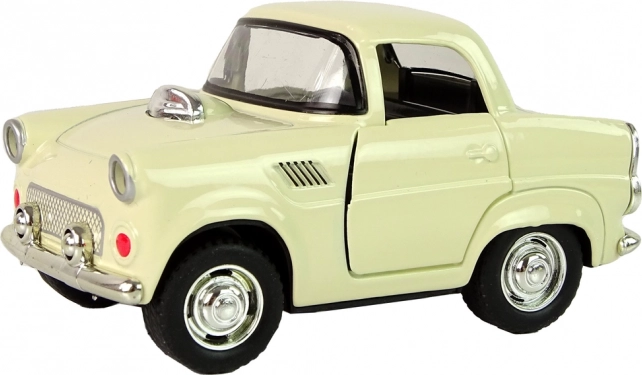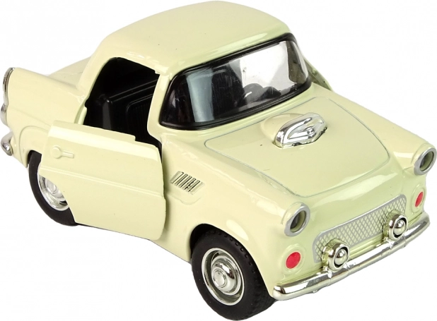 Klassisches Metallauto in beiger Farbe mit schwarzen und silbernen Details für ein realistisches Erscheinungsbild.
