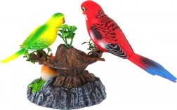 Im Paket enthalten: Zwei Papageien – ein roter und ein gelber – sitzen auf einem Ast und ein kleines Vögelchen in einer Schale. Die Vögel auf den Ästen machen verschiedene Geräusche und bewegen sich, was Ihnen das Gefühl gibt, inmitten der Natur zu sein, während der kleine Vogel in buntem Licht leuchtet. Drücken Sie einfach den schwarzen Knopf, um das Spielzeug zu aktivieren.