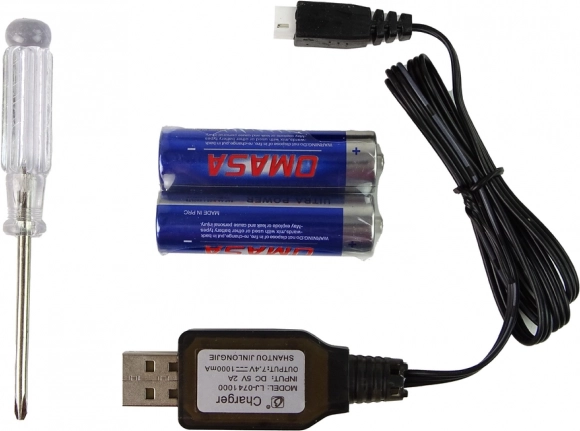 Die Fernsteuerung ermöglicht präzises Steuern des Autos nach vorn, hinten und zur Seite und eröffnet damit die Möglichkeit, verschiedene Strecken und Abenteuer zu gestalten. Zusätzlich sind ein Schraubendreher und ein Akkukabel im Set enthalten, die ein einfaches und bequemes Laden des Fahrzeugs ermöglichen.