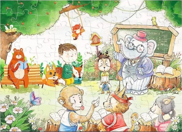Das Tierschule-Puzzle mit 100 Teilen bietet einen faszinierenden Einblick in die Tierwelt, in der der Elefant als Lehrer seine Schüler betreut. Diese edukative Grafik mit den Maßen 52 cm x 37,8 cm hilft Kindern, Erkenntnisfähigkeiten und Kreativität beim Entdecken der Tierumgebung zu entwickeln.