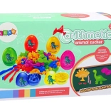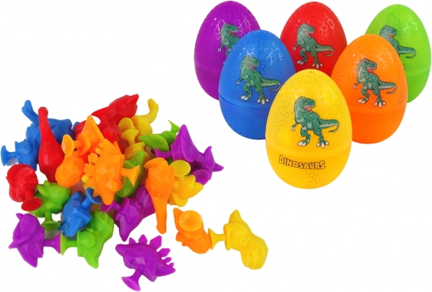 Das Set enthält sechs bunte Eier, in denen fröhliche Dinosaurierfiguren mit Saugnäpfen versteckt sind. Kinder können die Eier öffnen, ihre Schätze entdecken und die kleinen Dinosaurier nach Farben oder Arten sortieren. Dank der Saugnäpfe lassen sich die Figuren auf verschiedenen Oberflächen befestigen, was das Spiel bereichert, die Möglichkeiten erweitert und die kindliche Kreativität fördert.