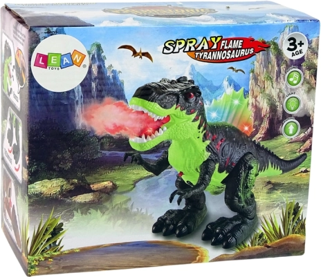 Dieser Dinosaurier ist so konzipiert, dass er Kinder mit seiner Interaktivität begeistert. Das Spielzeug läuft, gibt brüllende Geräusche von sich und aus seinem Maul kommt "Feuer" in Form von sicherem Wasserdampf.