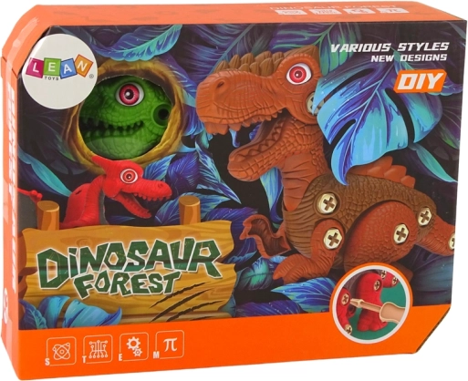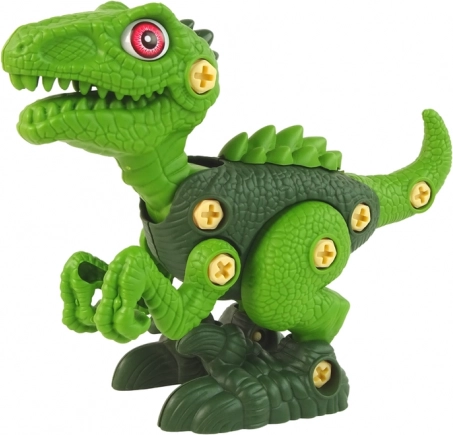 Nach Abschluss der Montage kann der Dinosaurier als Spielzeug oder dekorative Figur dienen. Das Set enthält das notwendige Werkzeug einschließlich Schraubendreher und eine detaillierte Montageanleitung. Geeignet für Kinder ab drei Jahren mit CE und EN 71 Zertifizierung für sicheres Spiel.