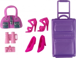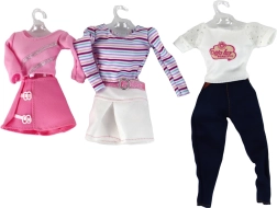 In dem Set finden Sie zwei stilvolle Bekleidungssets: rosa Kleider mit Schnallen und marineblaue Hosen mit weißem Top. Dank vielfältiger Modeoptionen und Accessoires, einschließlich Koffer, Schuhe und weiterer Accessoires, können Kinder die Modewelt erkunden.