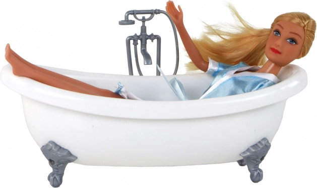 Die stilvolle weiße Wanne mit metallisch anmutenden Füßchen verwandelt jedes Spiel in ein Spa-Erlebnis. Ideal für entspannte Szenen und die Pflege der Puppe.