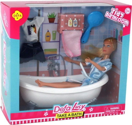 Dieses Bade-Set bietet alles, was Kinder für realitätsnahes Spiel brauchen: eine elegante weiße Wanne auf Füßen, eine Puppe mit langen blonden Haaren, die sich leicht kämmen lassen, sowie zahlreiche Accessoires für Pflege und Stil. Der blaue Bademantel verleiht der Puppe Komfort und Pfiff – bereit für Entspannung und Spaß.