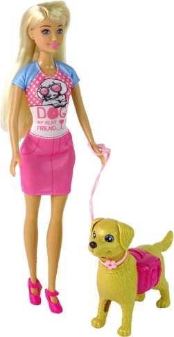 Mit diesem Set tauchen Kinder in die Welt der Fantasie und der Pflege eines Haustiers ein. Der interaktive Hund kann wiederholt mit Futterkügelchen aus dem Napf gefüttert werden, und dank beweglichem Schwanz, Ohren und Maul wirkt das Spiel natürlich und macht Spaß. Die Puppe mit langen blonden Haaren hat gelenkige Arme und Beine und nimmt realistische Posen beim Füttern, Gassigehen und Kuscheln ein.