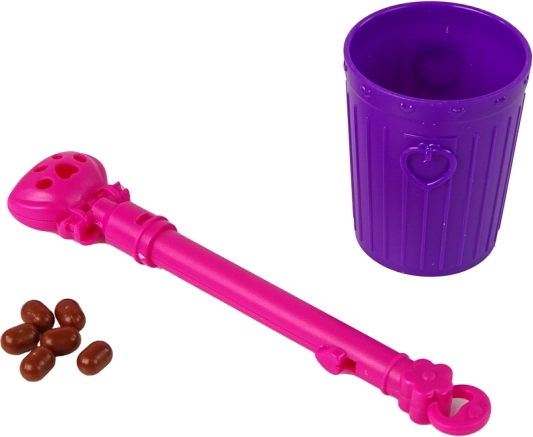 Enthalten sind eine rosa Leine, ein Mülleimer und eine Schaufel – Kinder üben Verantwortung, das Füttern und das Aufräumen nach dem Haustier während eines fröhlichen Spiels.