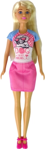 Die Puppe mit langen blonden Haaren ist an Armen und Beinen gelenkig, nimmt leicht verschiedene Posen ein und ihr stylisches Outfit in Rosatönen begeistert Kinder.