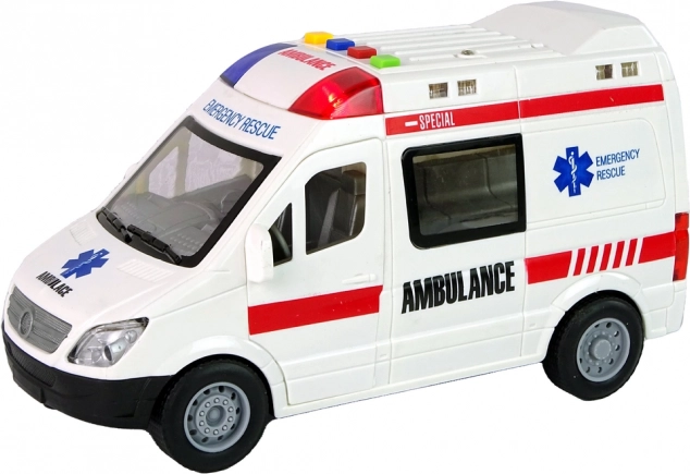 Der Krankenwagen besteht aus robustem Kunststoff, hat Gummireifen für leises und sicheres Fahren auf unterschiedlichen Oberflächen sowie realistische Elemente wie Beschriftungen, Warnleuchten und Fenster. Fördert Kreativität, Rollenspiel und die Entwicklung der Feinmotorik.