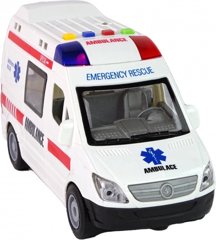 Dieses detailreich gestaltete Krankenwagen-Spielzeug bietet interaktiven Spaß: 4 farbige Tasten lösen verschiedene Soundeffekte und Lichter aus, die öffnenden Türen erlauben einen Blick ins Innere und das Schwungrad sorgt für eine flotte Fahrt ohne Batterien für den Radantrieb. Dank der Maße 22 × 8 × 12 cm liegt er perfekt in Kinderhänden.