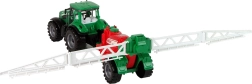 Die rot‑grüne Spritze mit langen weißen Auslegern lässt sich leicht an den Traktor koppeln und simuliert die Arbeit auf dem Feld.